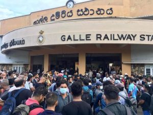 காலி ரயில் நிலையத்திலிருந்து புறப்பட்ட ஆர்ப்பாட்டக்காரர்கள்