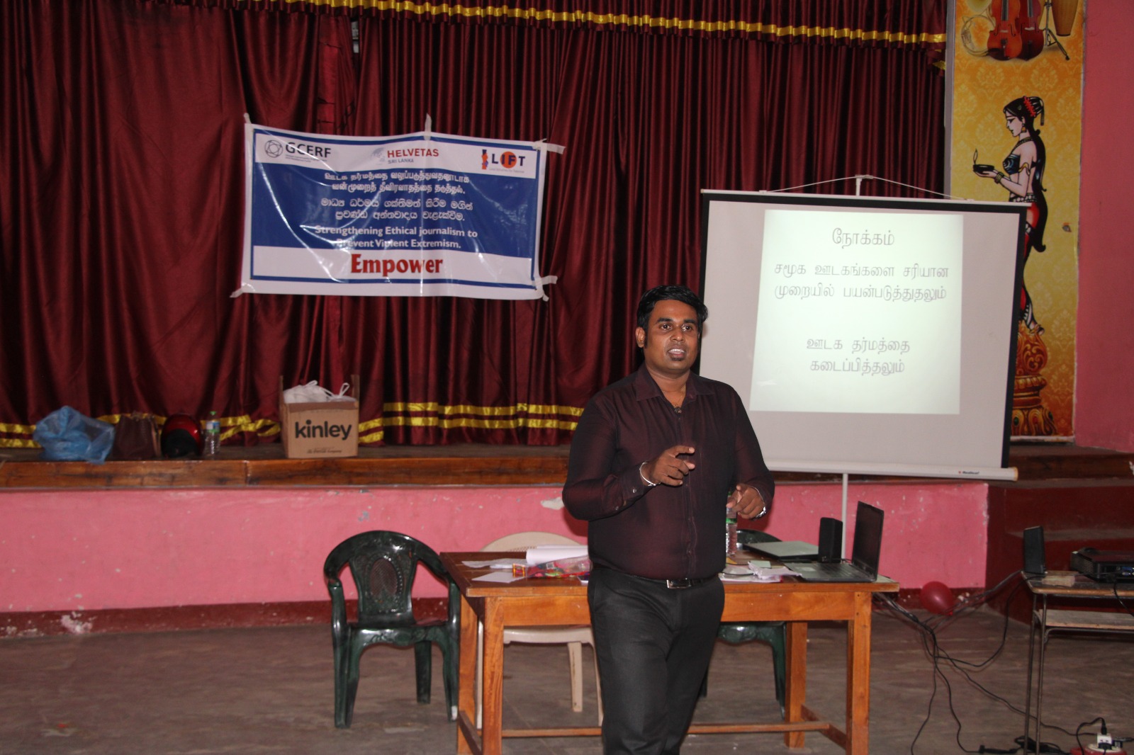 HELVETAS நிறுவனத்தின் நிதி அனுசரணையில் LIFT நிறுவனத்தினால் அமுல்படுத்தப்படும் “ஊடக தர்மத்தை வலுப்படுத்தலும், வன்முறைத் தீவிரவாதத்தை தடுத்தலும்” எனும் வேலைத்திட்டத்தின் ஒரு அங்கமாக இது நடாத்தப்படுகிறது.