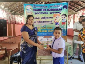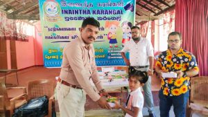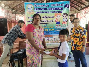 திருகோணமலை மாவட்டத்தில் உள்ள கிண்ணியா விபுலானந்த வித்தியாலயத்தில் கல்வி கற்கும் 56 பாடசாலை மாணவர்களுக்கும் மற்றும் திருகோணமலை பாரதி தமிழ் வித்தியாலயத்தில் கல்வி கற்கும் 50 மாணவர்களுக்கும் இணைந்த கரங்கள் அமைப்பால் கற்றல் உபகரணங்கள் மற்றும் புத்தகப்பை என்பன பாடசாலையின் அதிபர்களான செ. சத்தியசீலன் மற்றும் திருமதி சுஜந்தினி யுவராஜா ஆகியோர் தலைமையில் வழங்கி வைக்கப்பட்டன.