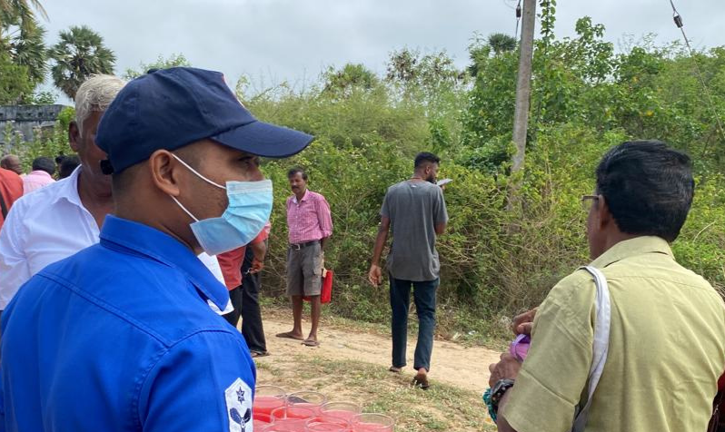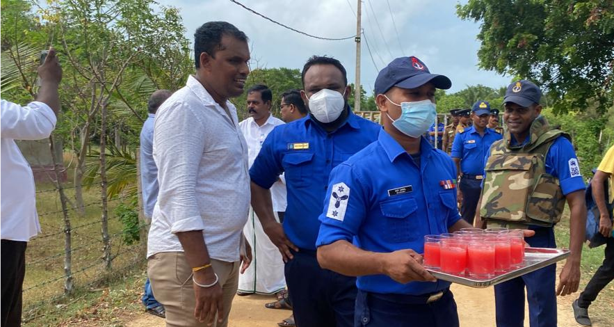 குறித்த எதிர்ப்பு போராட்டத்தின் போது கடற்படையினர் போராட்டத்தில் ஈடுபட்டவர்களுக்கு சிற்றுண்டி மற்றும் குளிர்பானங்களை வழங்க முற்பட்ட வேளையில் போராட்டக்காரர்களால் எதிர்ப்புக் கோசங்கள் எழுப்பப்பட்டன.