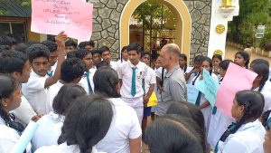 பாடசாலை முடிவடைந்ததும் பாடசாலை பிரதான நுழைவாயில் முன்பாக ஒன்றுகூடிய உயர்தர மாணவர்கள் போராட்டத்தில் ஈடுபட்டனர்.
