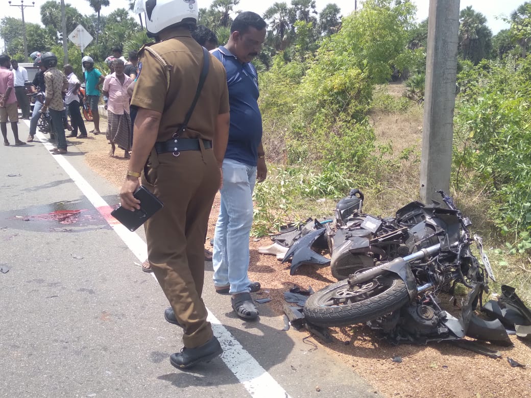 இவ் விபத்தில் யாழ். இந்துக்கல்லூரியில் உயர்தரத்தில் கல்வி கற்கும் கண்டுவில் வீதி சாவகச்சேரியை சேர்ந்த 19 வயதான சிவபாலன் பிரவீன் என்ற மாணவனே உயிரிழந்துள்ளார்.