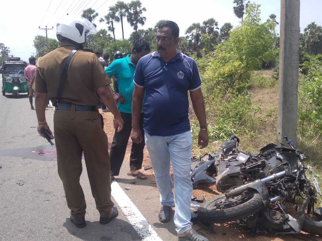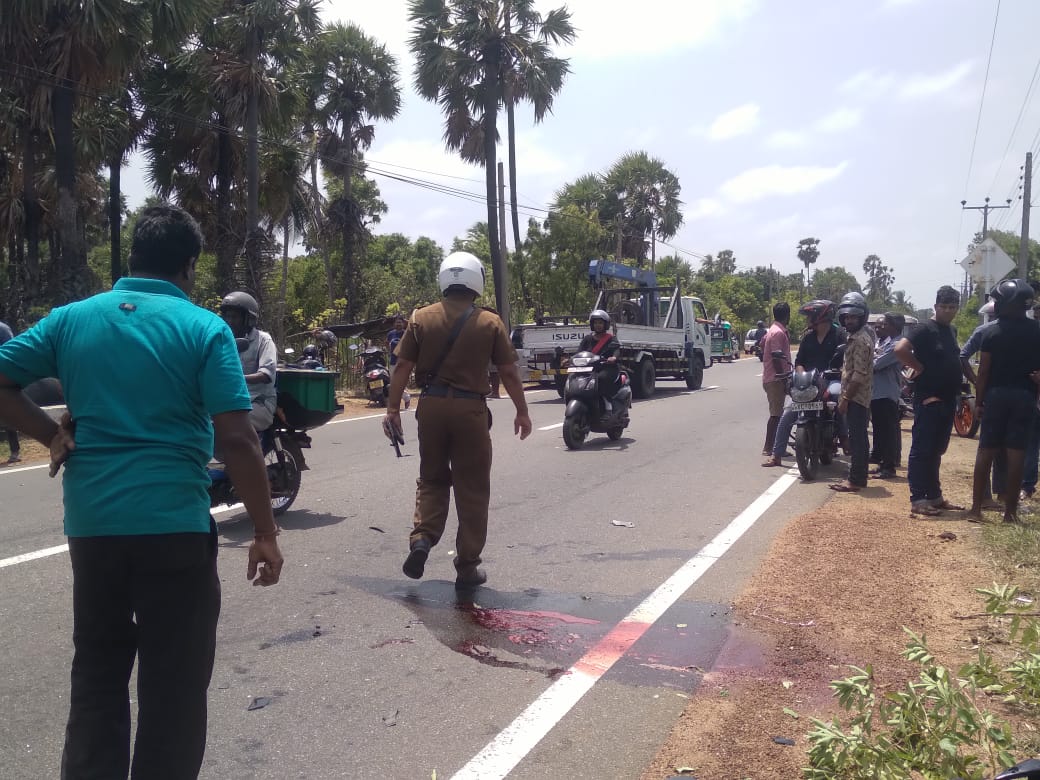 இன்று (13) முற்பகல் 11 மணியளவில் குறித்த விபத்து இடம்பெற்றுள்ளது. மாட்டு வண்டி சவாரி போட்டிக்காக வண்டில் மற்றும் மாடுகளை ஏற்றிச்சென்ற கனரக லொறியுடன் மோட்டார் சைக்கிள் நேருக்கு நேர் மோதியதிலேயே குறித்த விபத்து இடம் பெற்றுள்ளது.