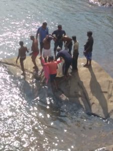 நீரில் மூழ்கி காணாமல்போன இளைஞனை பொலிஸாரும், பிரதேச மக்களும் இணைந்து தேடி மீட்டனர்.