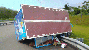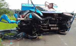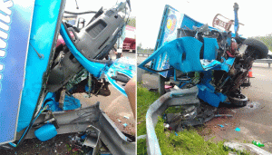 இந்த விபத்தில் ஐஸ்கிரீம் வாகனம் வீதியின் இடது பக்கமாக இழுத்துச் செல்லப்பட்டு பாதுகாப்பு வேலியில் மோதியுள்ளதோடு வாகனத்தின் சாரதி இடது பக்கத்தில் அமர்ந்திருந்த மனைவி மற்றும் குழந்தை ஆகியோர் வாகனத்திலிருந்து வெளியே தூக்கி வீசப்பட்டு வாகனம் கவிழ்ந்துள்ளது.