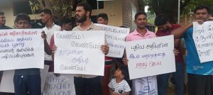 இதனால் பாடசாலைக்குள் மாணவர்கள் செல்லாமல் வீதி ஓரங்களில் தமது எதிர்ப்பினை தெரிவித்து இருந்தனர். இவர்களோடு ஏனையவர்களும் இணைந்து ஆர்ப்பாட்டத்தில் ஈடுபட்டனர்.